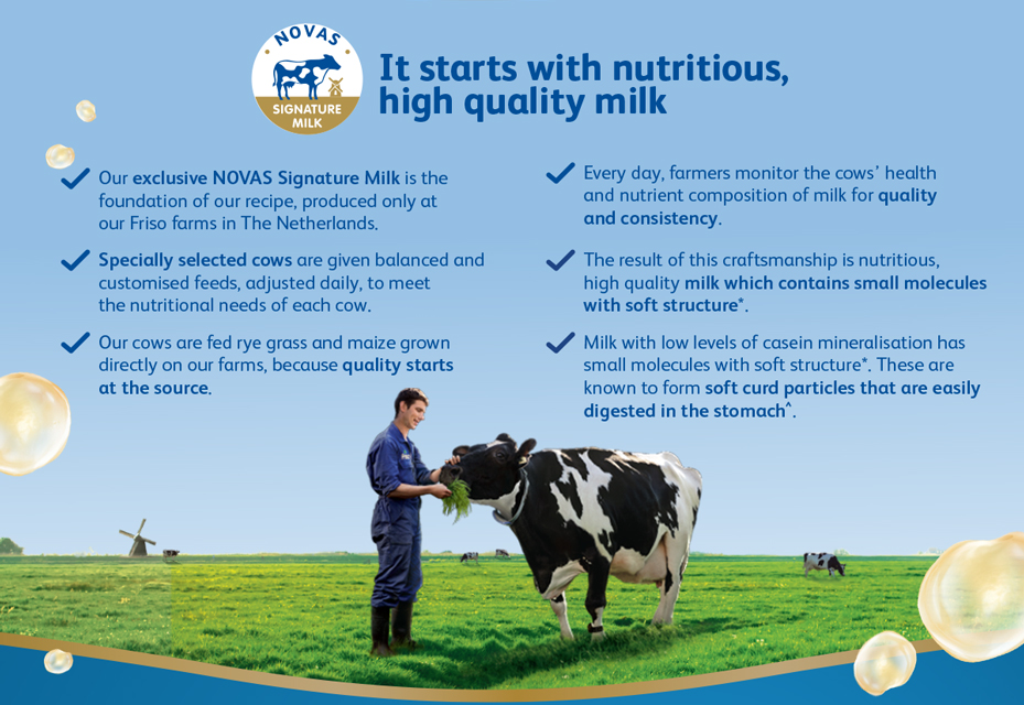 • Made from high-quality NOVAS Signature Milk that is sourced directly from our own farms in the Netherlands, crafted by our Holland Dairy Science Expertise.