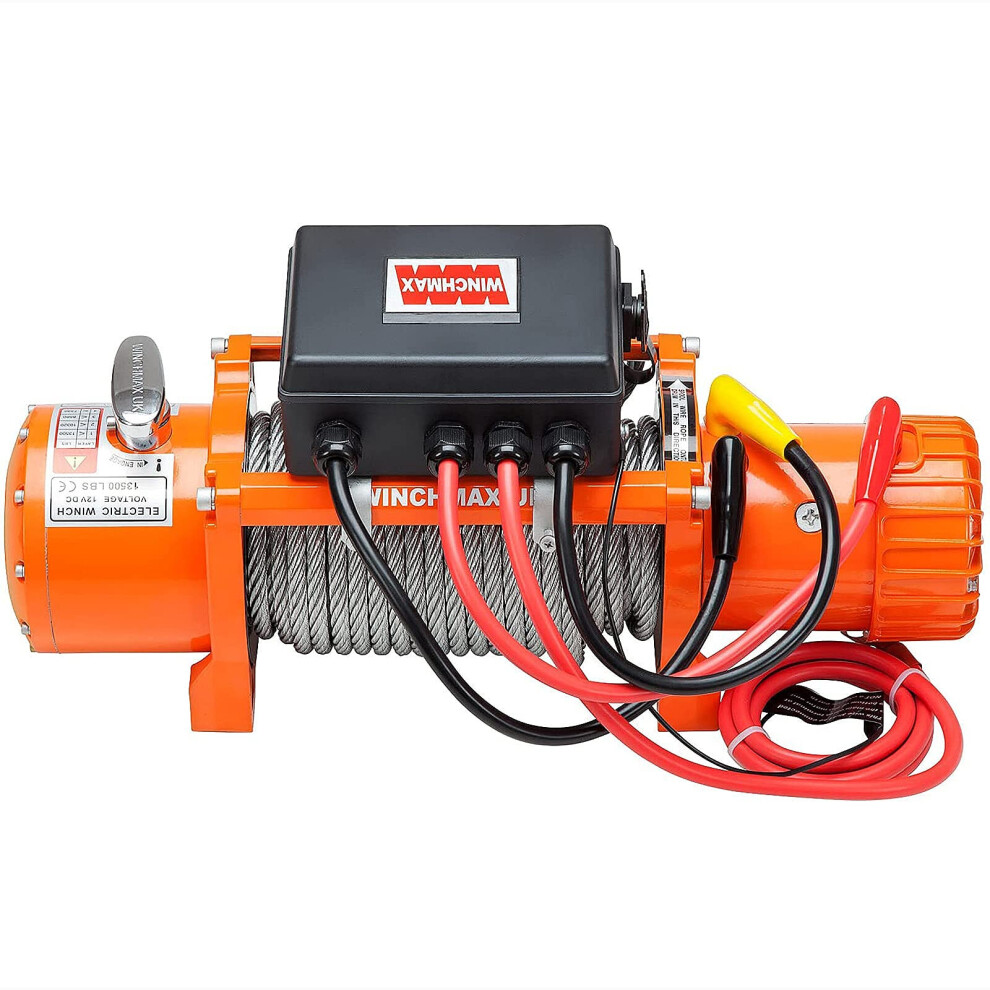 13,500lb (6,123kg) Original Orange 12V Electric Winch, Steel Rope, Twin Wireless Remote Control.