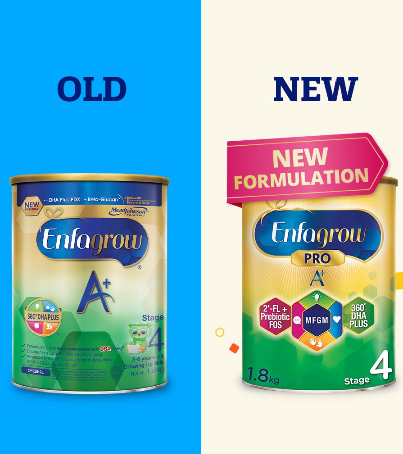 - With over 100 years of experience in pediatric nutrition, Mead Johnson Nutrition has scientifically formulated Enfagrow Pro A+ Stage 4 with a unique blend of nutrients that are important for overall mental and physical development.