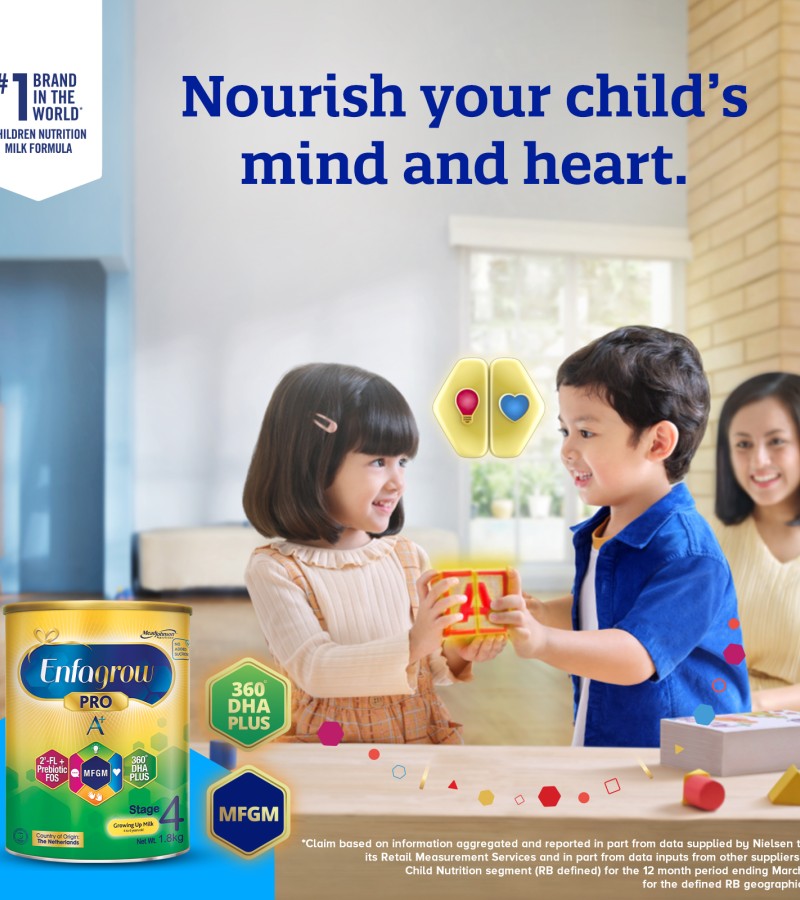 • With over 100 years of experience in pediatric nutrition, Mead Johnson Nutrition has scientifically formulated Enfagrow Pro A+ Stage 4 with a unique blend of nutrients that are important for overall mental and physical development.