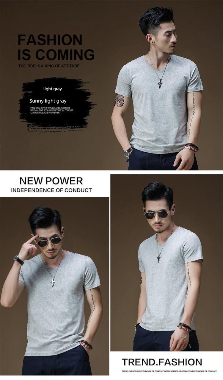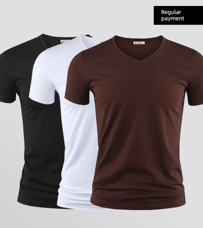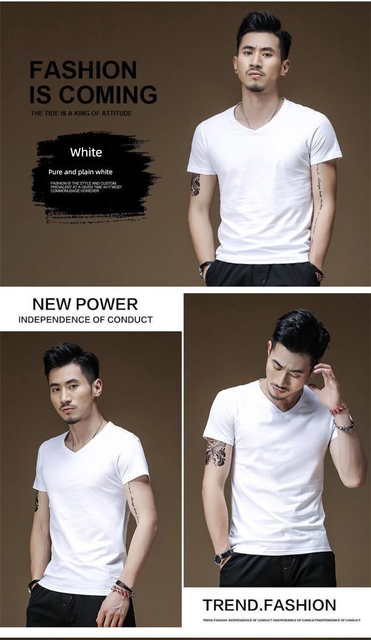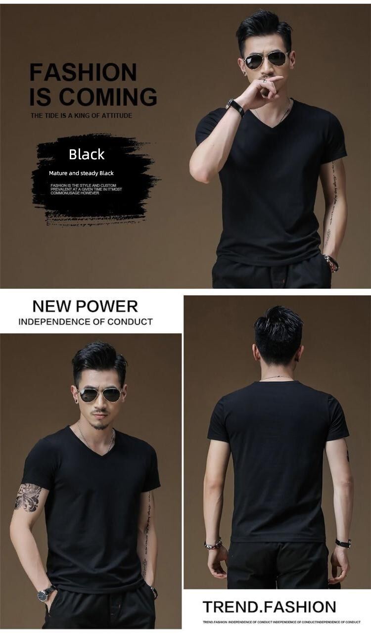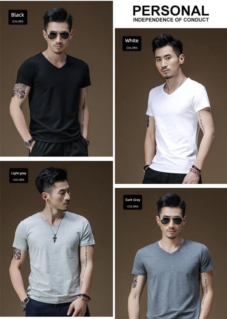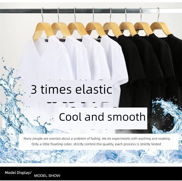 Modal Men's Solid Color and V-neck Slim-Fit Ice Silk Short Sleeve Shirt