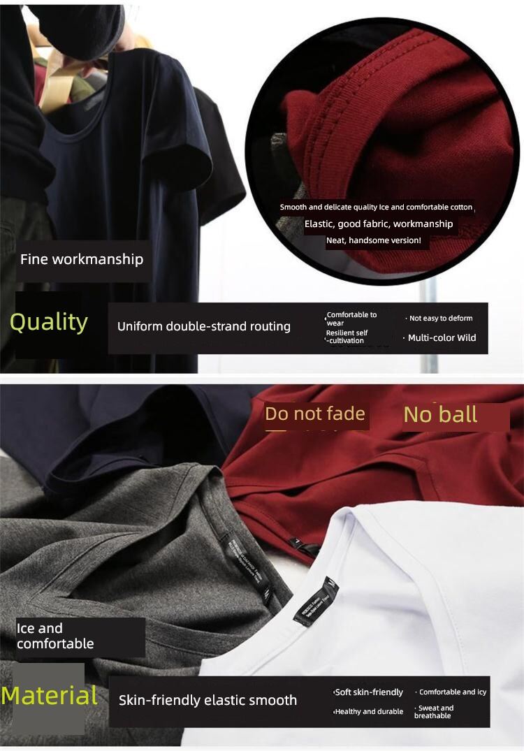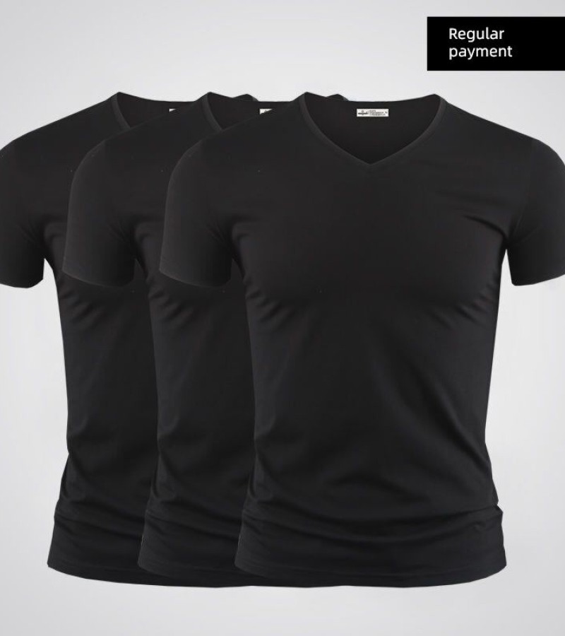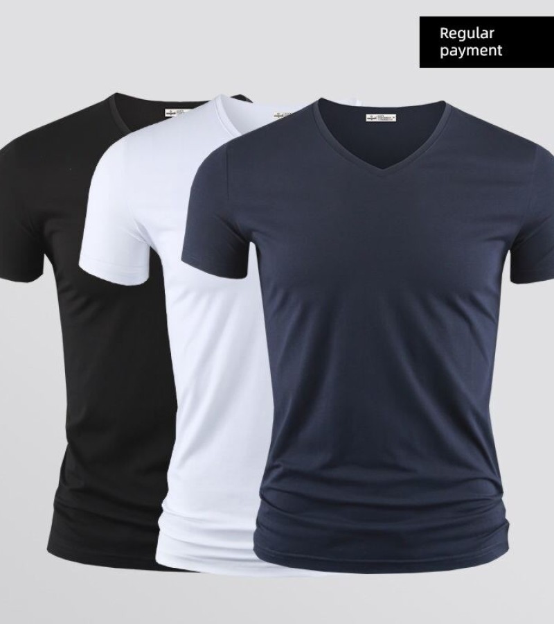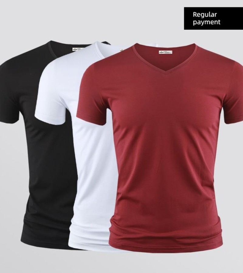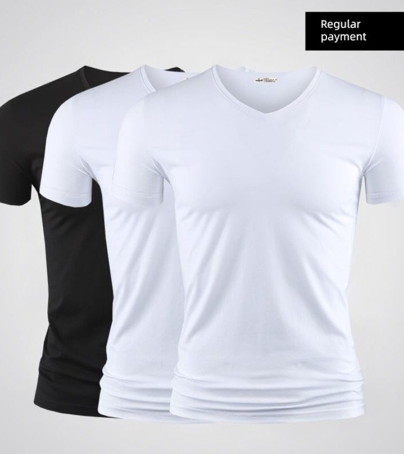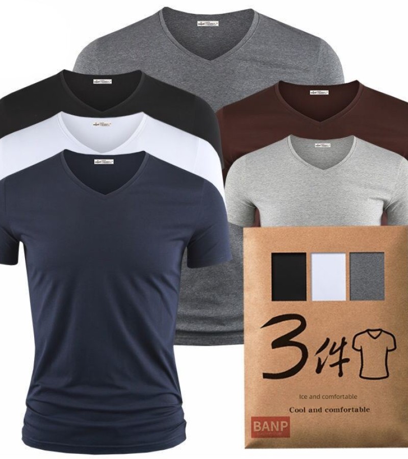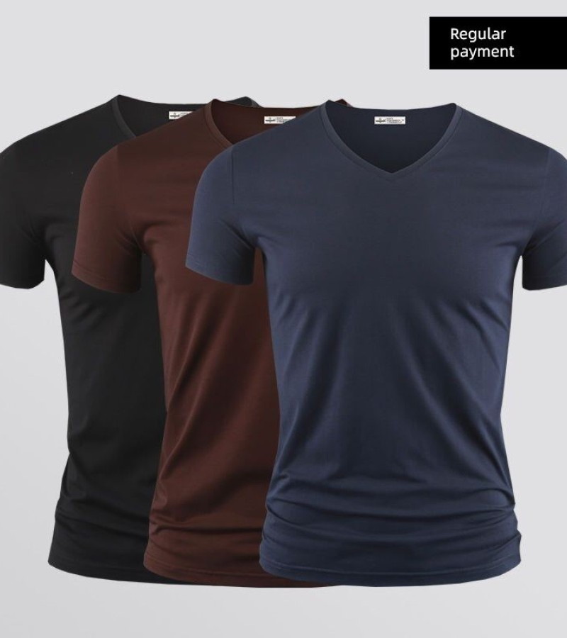 Modal Men's Solid Color and V-neck Slim-Fit Ice Silk Short Sleeve Shirt