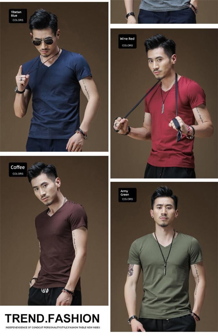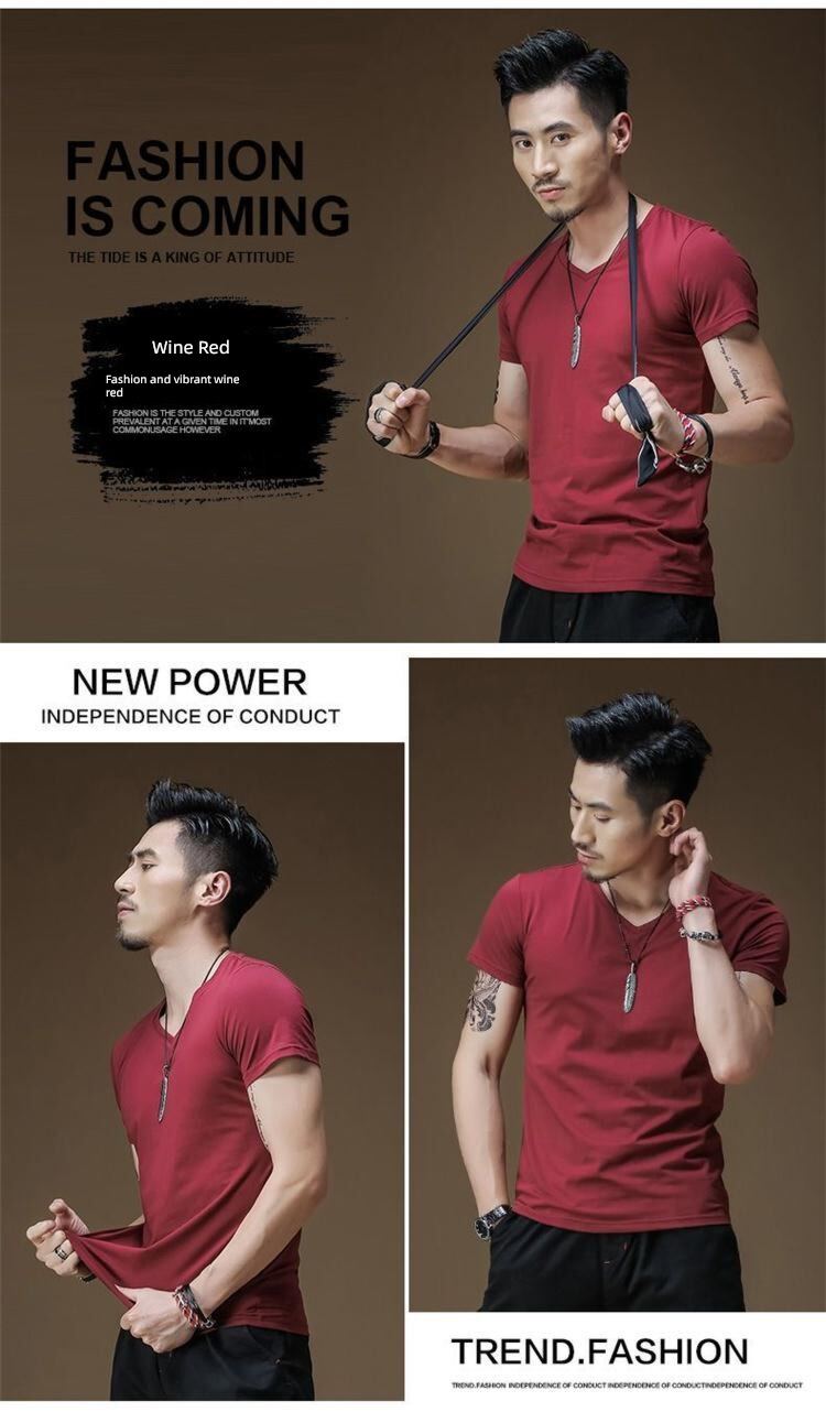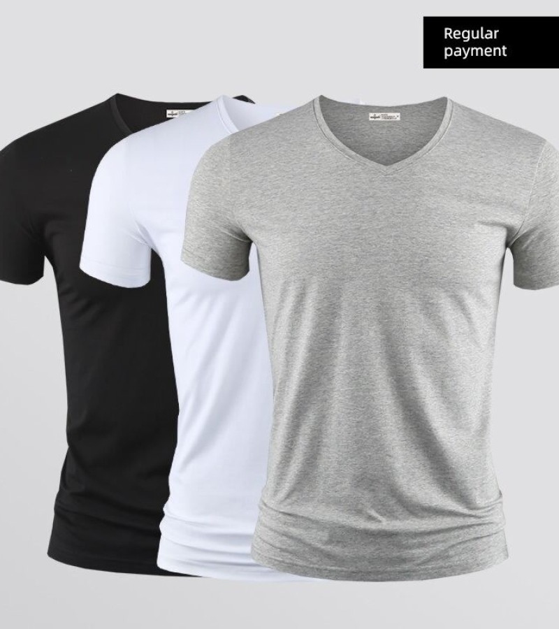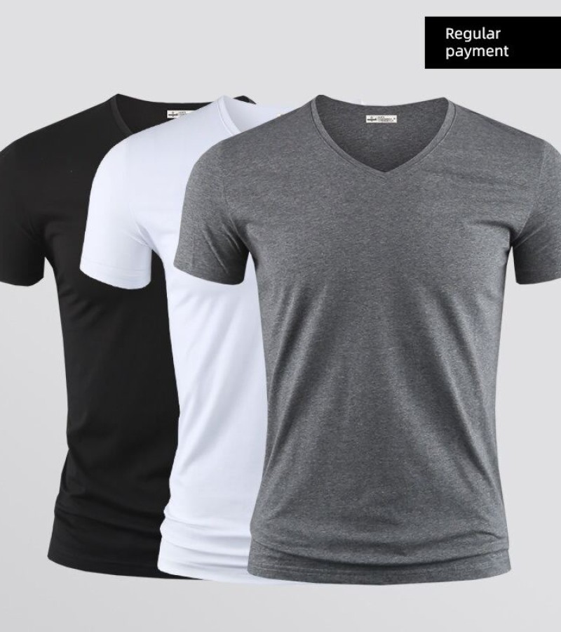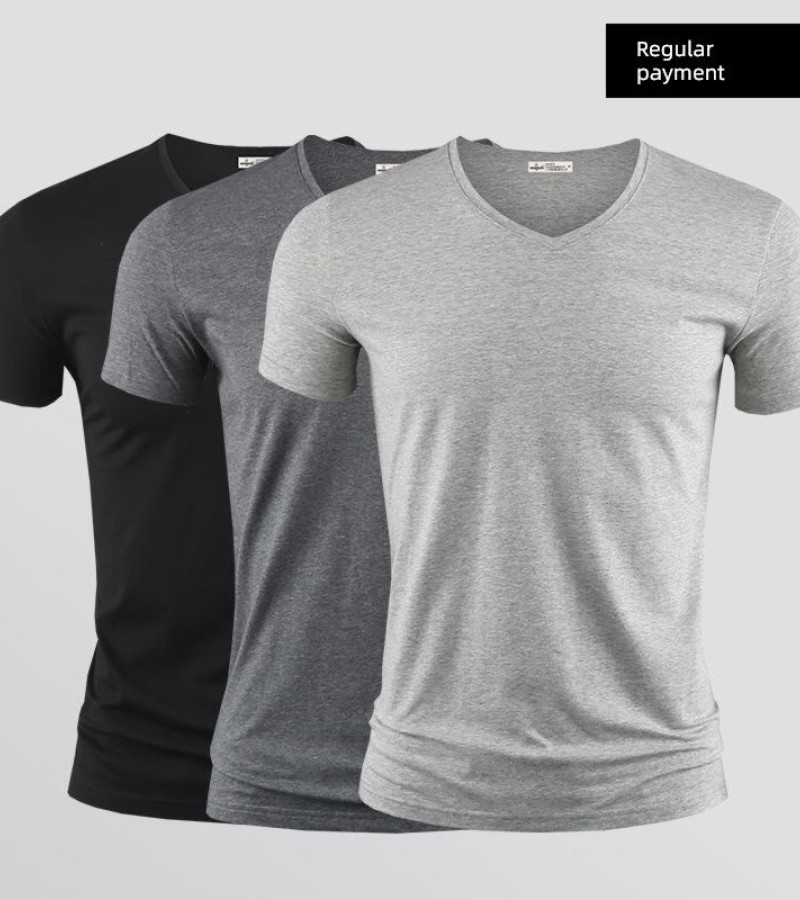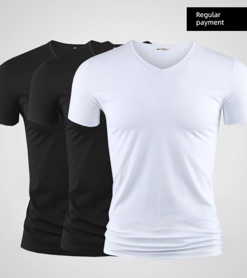Modal Men's Solid Color and V-neck Slim-Fit Ice Silk Short Sleeve Shirt