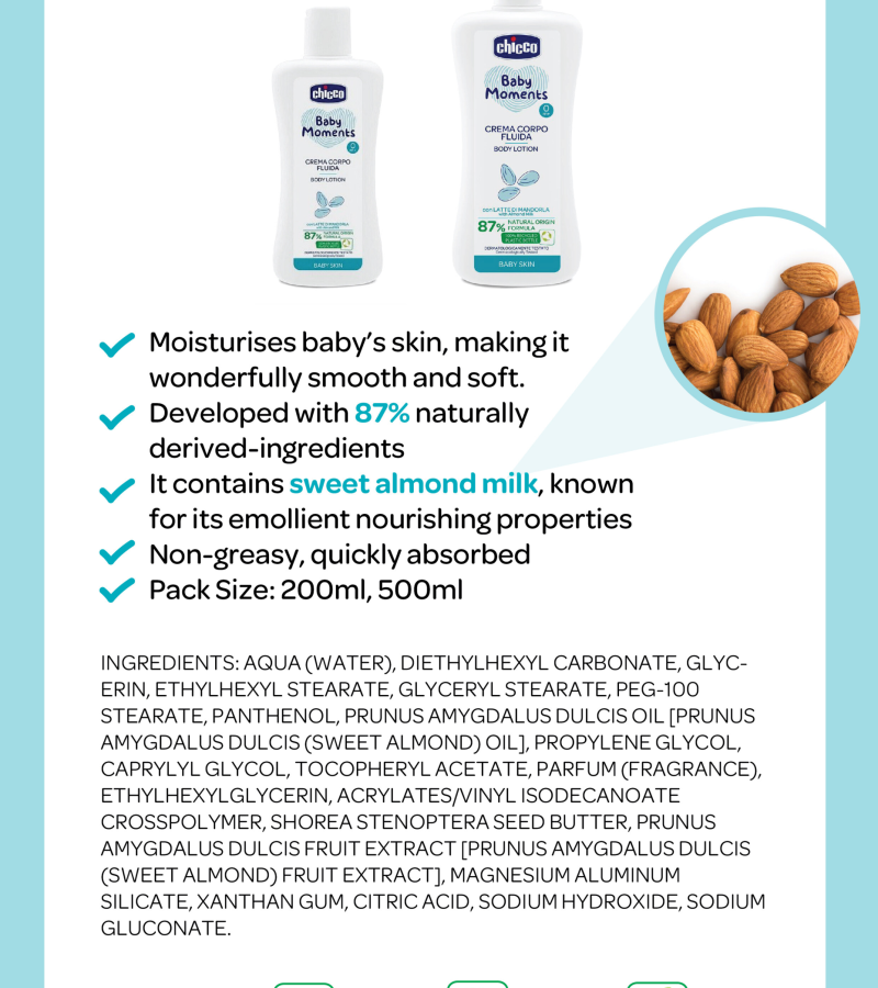 Chicco Baby Moments Set Body Lotion 500ml (Body Lotion 500ml + No-Tears Bath Shampoo 200ml)