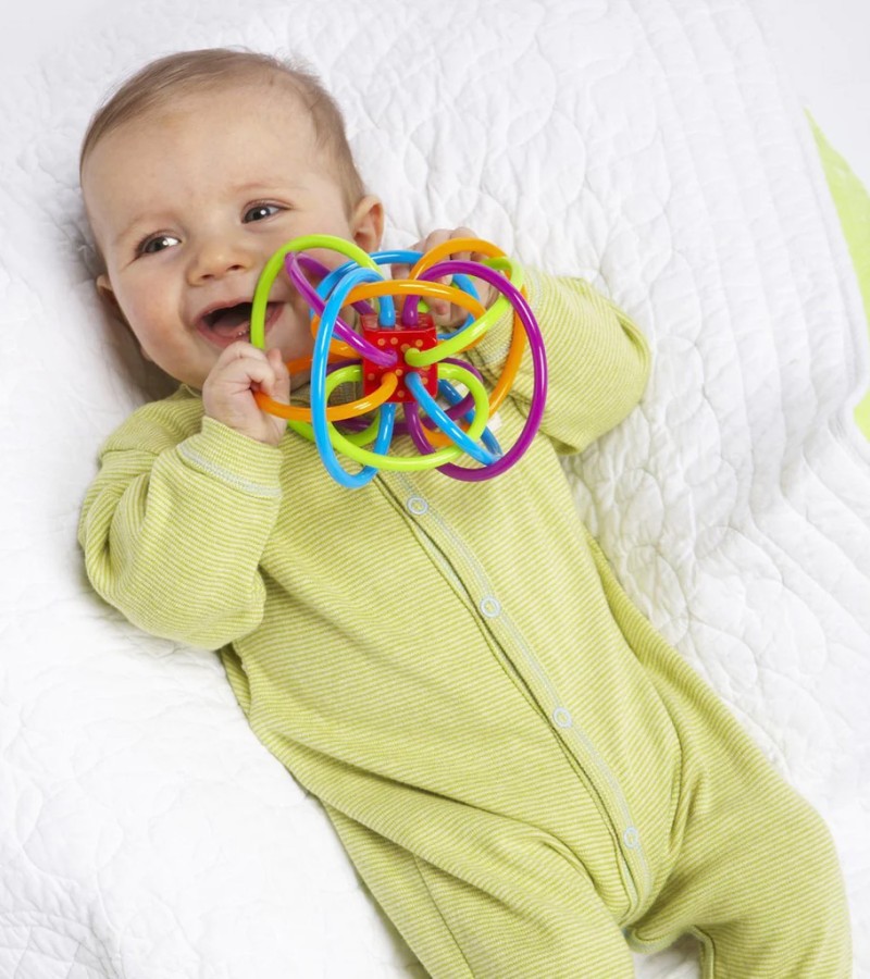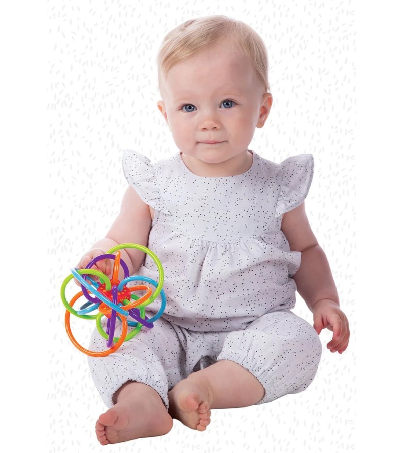 Colorful loops made from soft, pliable plastic are easy to grasp and hold plus caregivers can refrigerate for a soothing teether. The Winkel teether rattle is a must have for teething newborns. Made of pu tubing (polyurethane) and as such does not contain BPA or PVC and meets the CPSC and European requirements for phthalates. Was named a finalist for ASTRA Best Toys for Kids award program, is the winner of an Oppenheim Toy Portfolio Award, Dr. Toys Best Classic Toy Award and a Hot Diggity Award. Finalist for a Cribsie Award.