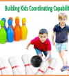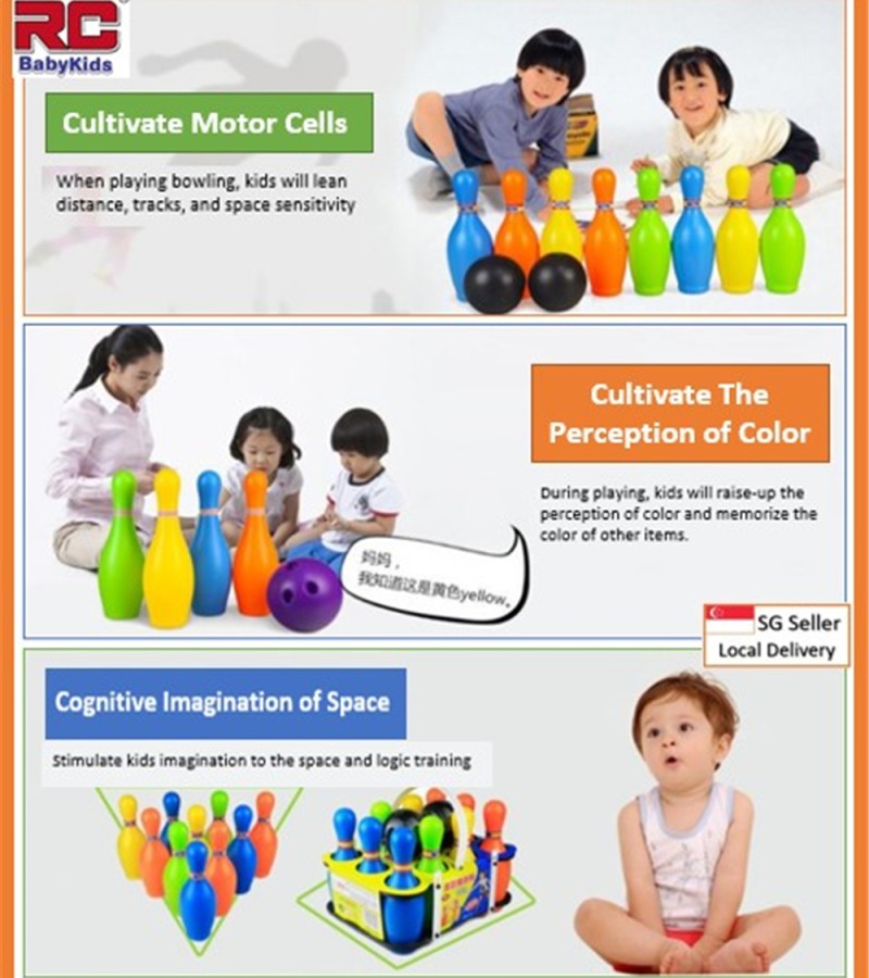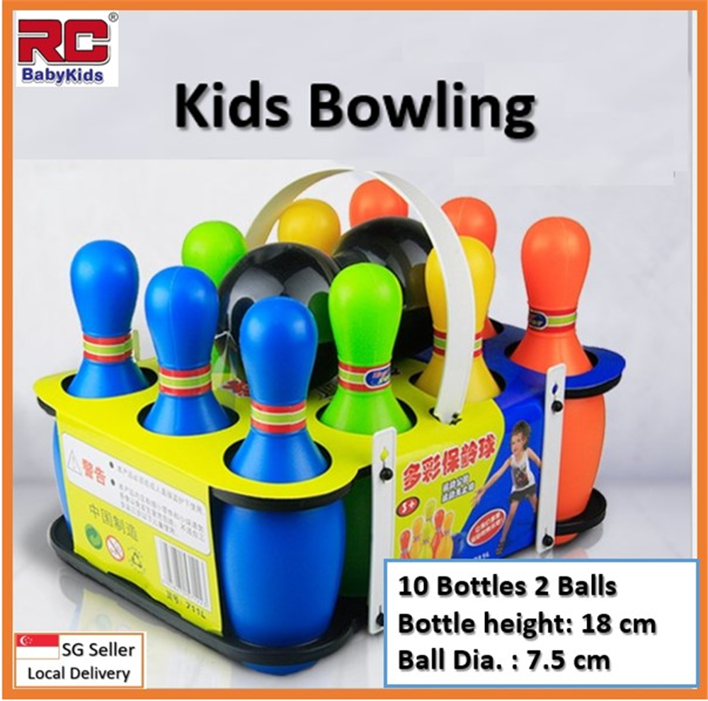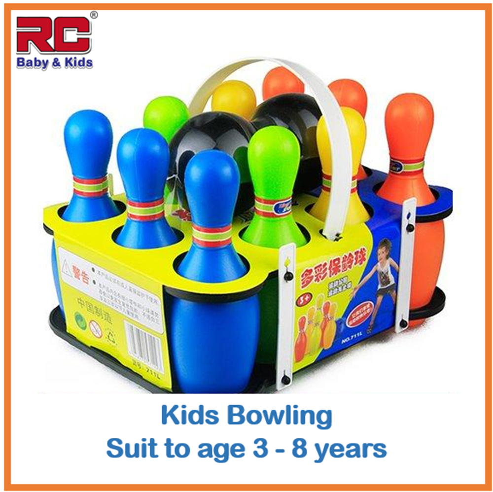 • 10 Bowling Pins + 2 Bowling BallsCute and colorful *,which is attractive to children. *Children will have hours of fun with this set indoors or outdoors. *Babies overall abilities will be improved while having fun. *Taking exercise and doing sports from childhood,build strong body.