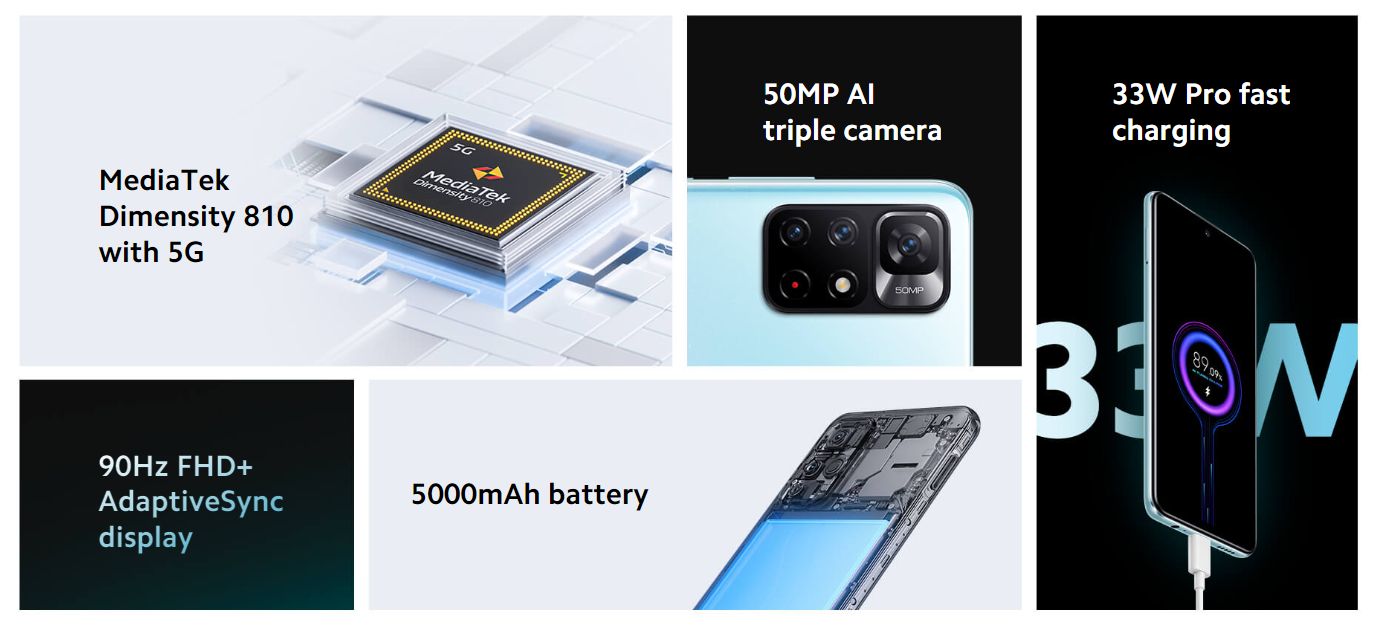 MediaTek Dimensity 810 adopts a superior 6nm process and it features an octa-core CPU with a speed of up to 2.4GHz. Chipset, as the "heart" of a smartphone, notably boots its performance, efficiency and speed.