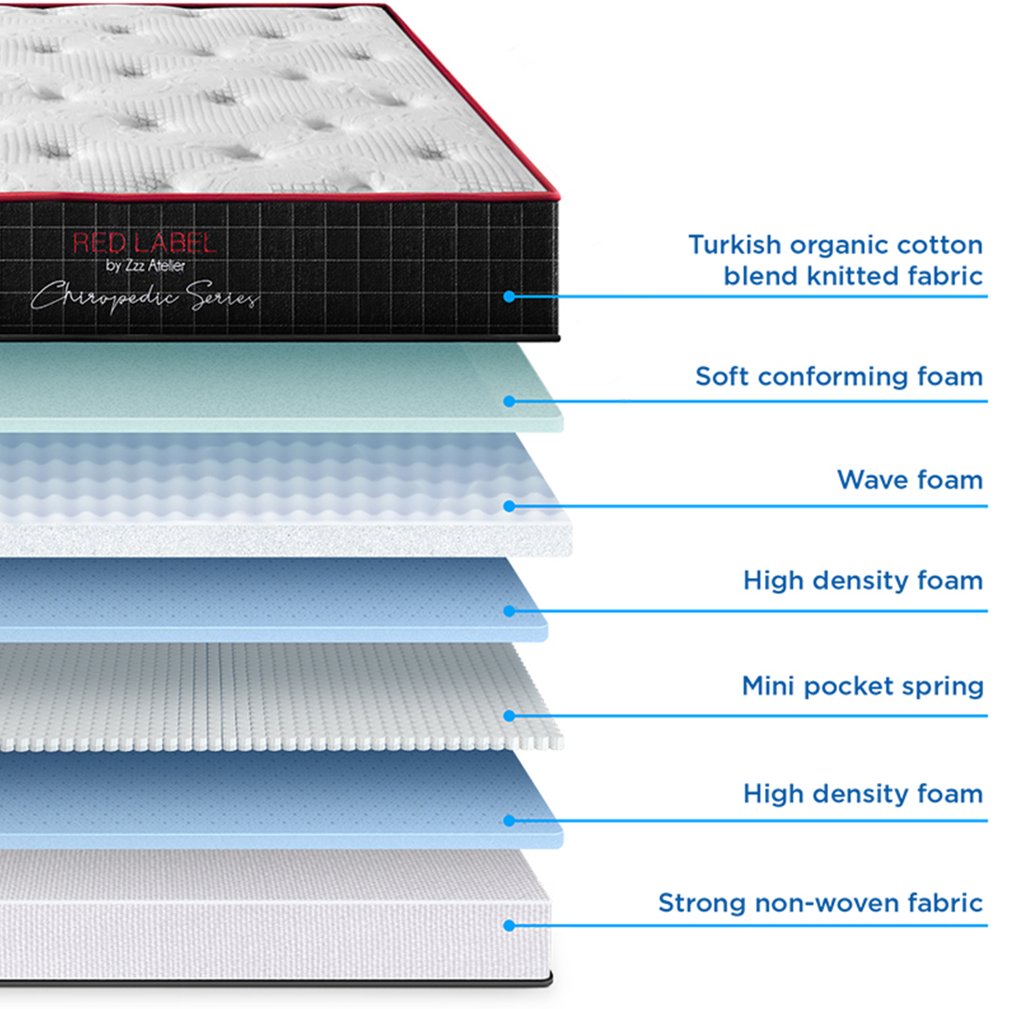 Zzz Atelier Red Label Pocketed Spring Mattress 9" Chiropedic 5 Zone Individually * AUSTRALIAN BRAND * - Hotel Grade