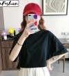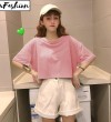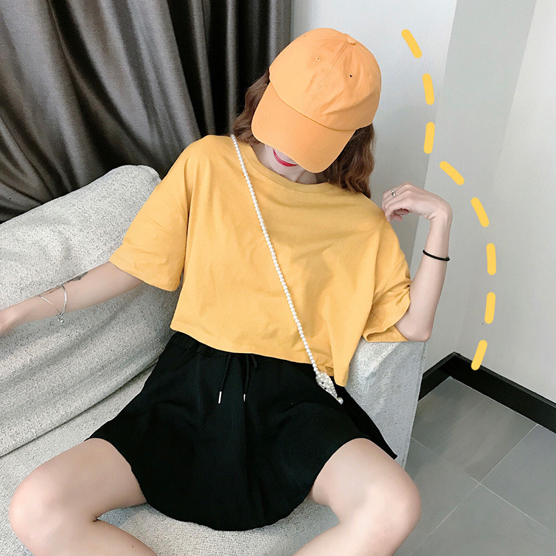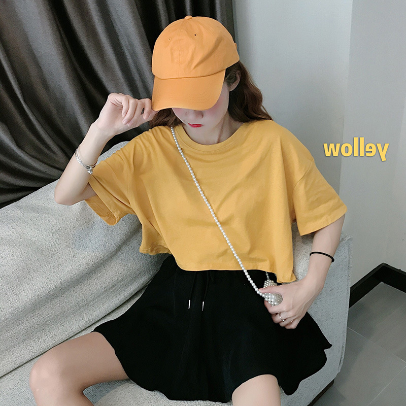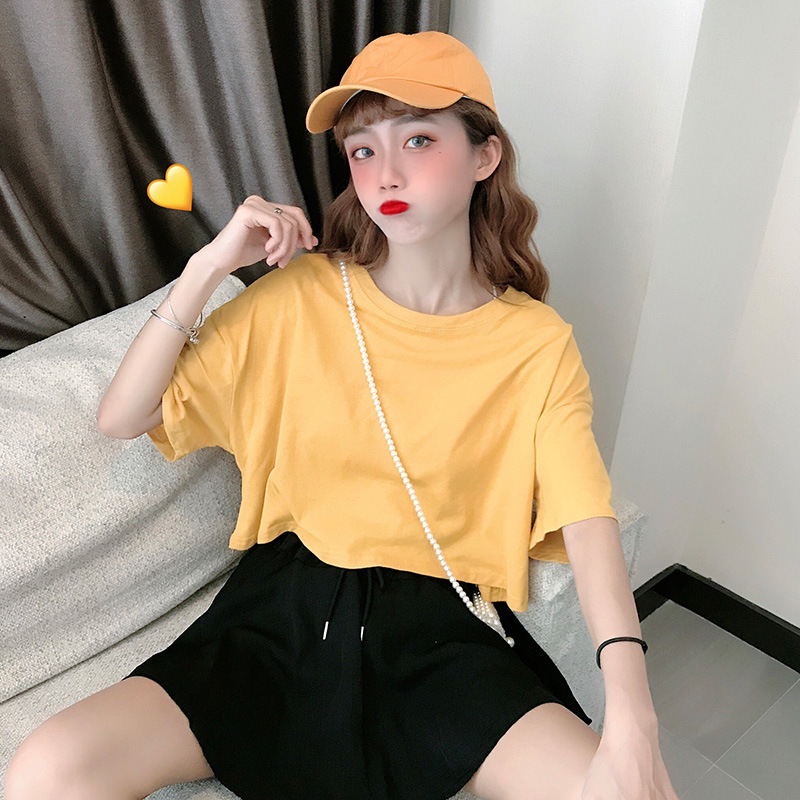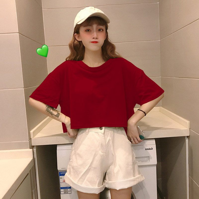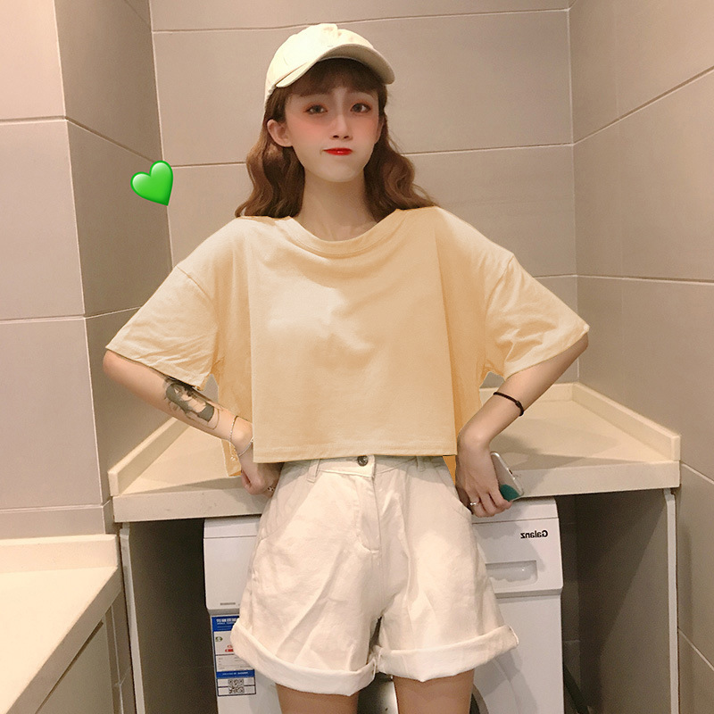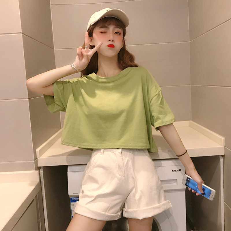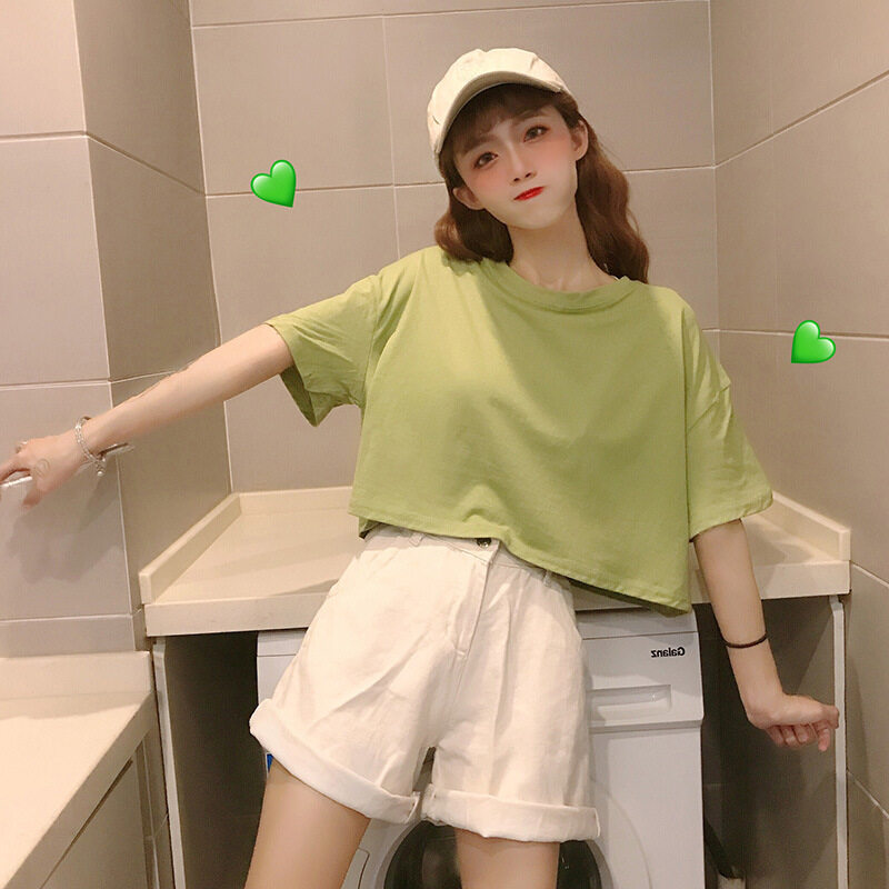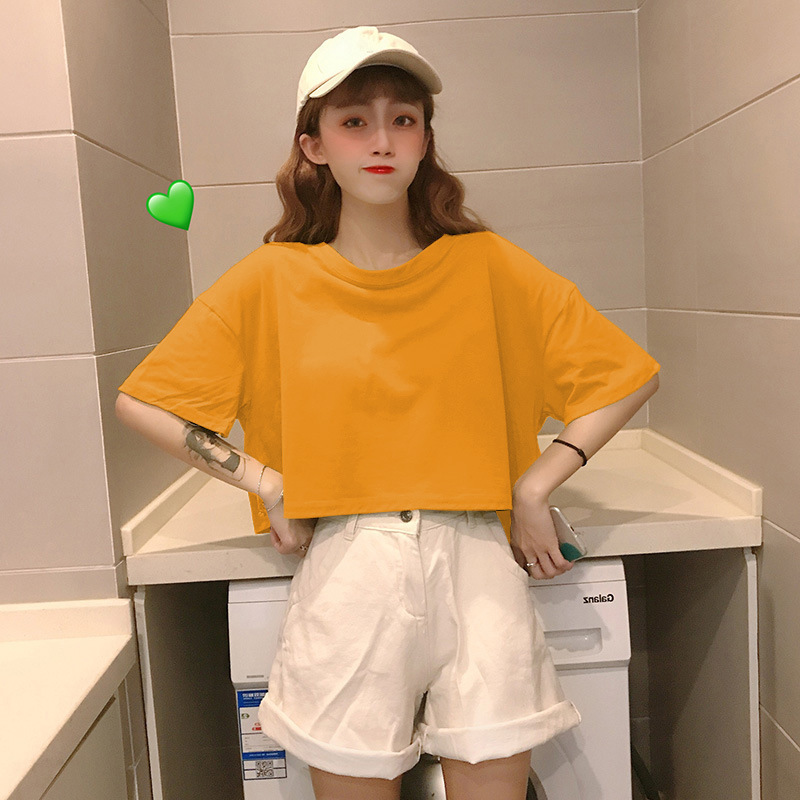 LuFashion Crop Tops for Women Summer Candy Colors Short Sleeve Plain Casual T-Shirts