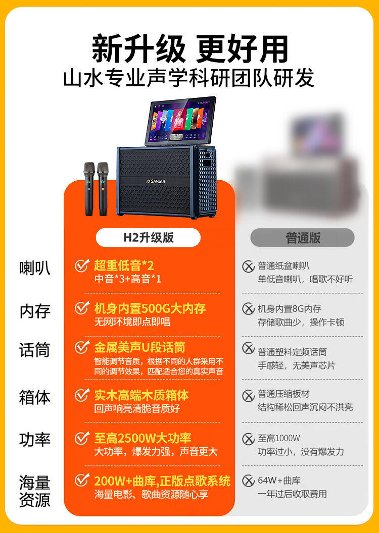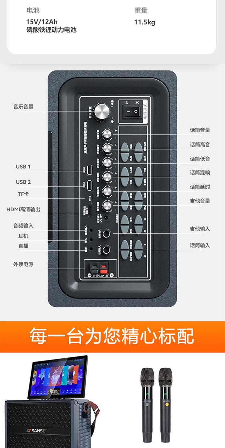 Shanshui H2 Portable High-Power Audio Outdoor Speaker Karaoke Family KTV Set Karaoke Player Square Dance Audio