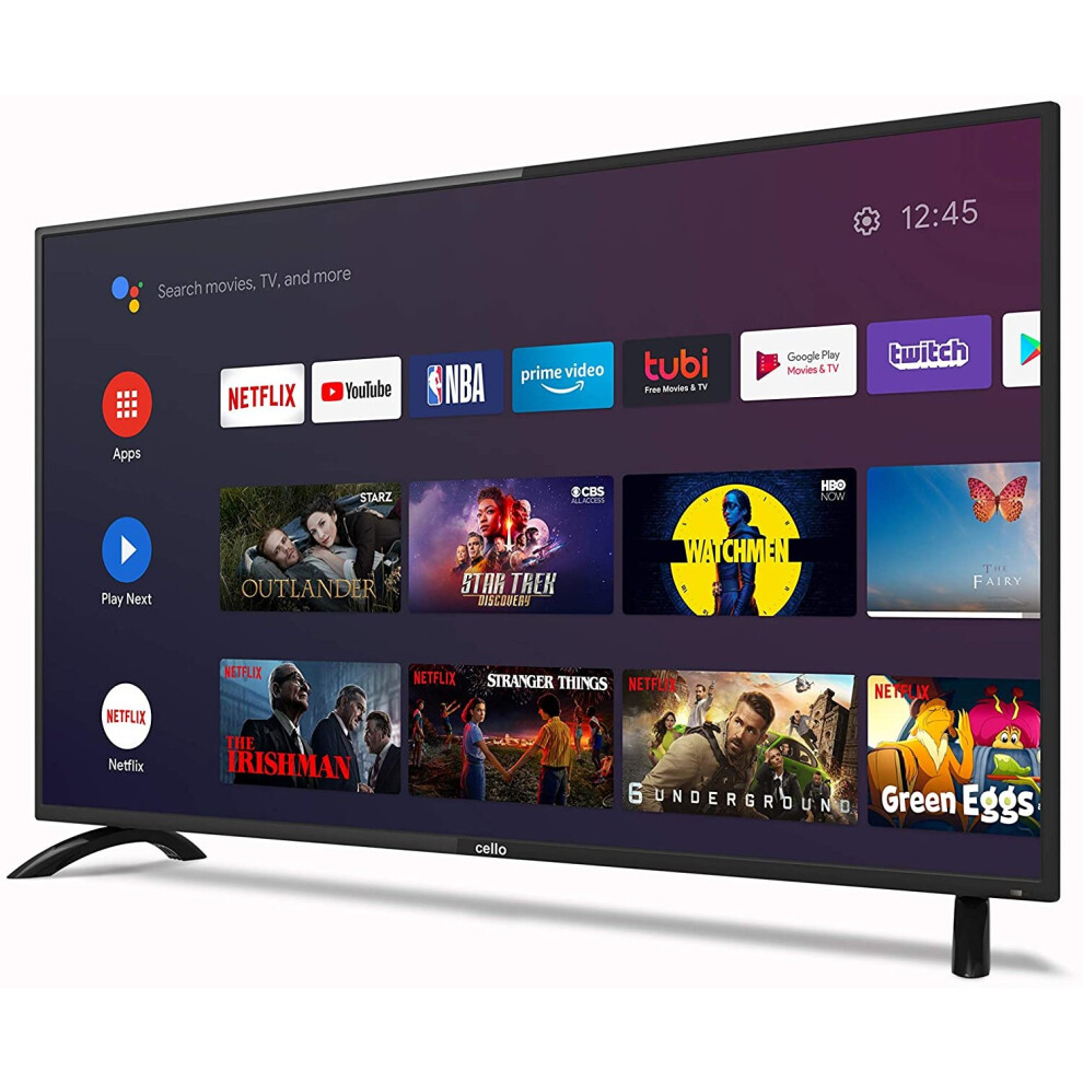 Size Name:40 INCHThis 40″ Full HD Smart Android TV comes with the very latest Google technology and multiple viewing options so you can always find something to watch. Watching TV has never been easier, simply say ‘Ok Google' or press the mic button on the remote to quickly find the latest movies or check the football scores. Cello Android TVs include Freeview Play as standard, allowing users to access an additional 85 channels plus 20,000 hours of on demand content, for no extra cost. With Google Play Store built in there is an app for everyone. Download all of your favourites from Netflix and Disney + to Youtube and catch up apps like BBC iPlayer. As well as all of those viewing options, using your Android device you can cast photos, videos, music and other content from your mobile device straight to the TV using Chromecast technology.