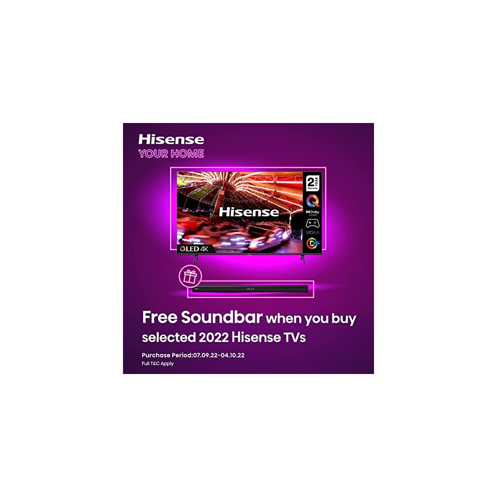 QLED: Get closer to reality with over a billion true-to-life colors. A wider palette of color ensures smoother gradients whilst reds, greens and blues appear for more vivid and realistic watching experience, especially for gaming. 4K UHD: 4 times higher resolution than FHD TVs. Binge watch your favorite shows, immerse yourself in the latest movies, or thrill in every moment of the hottest games. Dolby Vision: Inspired by cinema technology, Dolby Vision HDR technology gives an astonishing brightness and contrast depth by 40 times brighter and blacks 10 times darker than standard picture. VIDAA U5: An easy, smart and intuitive OS, simply access to rich contents and global applications (YouTube, Netflix and Freeview Play etc.), making your TV more interesting DTS Virtual X: Premium audio post-processing solution for TVs that brings height to the entertainment experience. Leveraging the leadership in virtual surround sound, the DTS Virtual solution psychoacoutsically delivers up to 7.1.4 immersive content through traditional speakers in the horizontal plane. Alexa Built-in: Do more on your TV with your voice, ask Alexa to play music, hear the news, get weather and control your smart home, and more. Game Mode: When connected to a gaming device, the user can change the TV to Game Mode. It makes sure that MEMC and other PQ adjustments are off to ensure a lower latency. The Input lag of all our 4K products are within 20ms.
